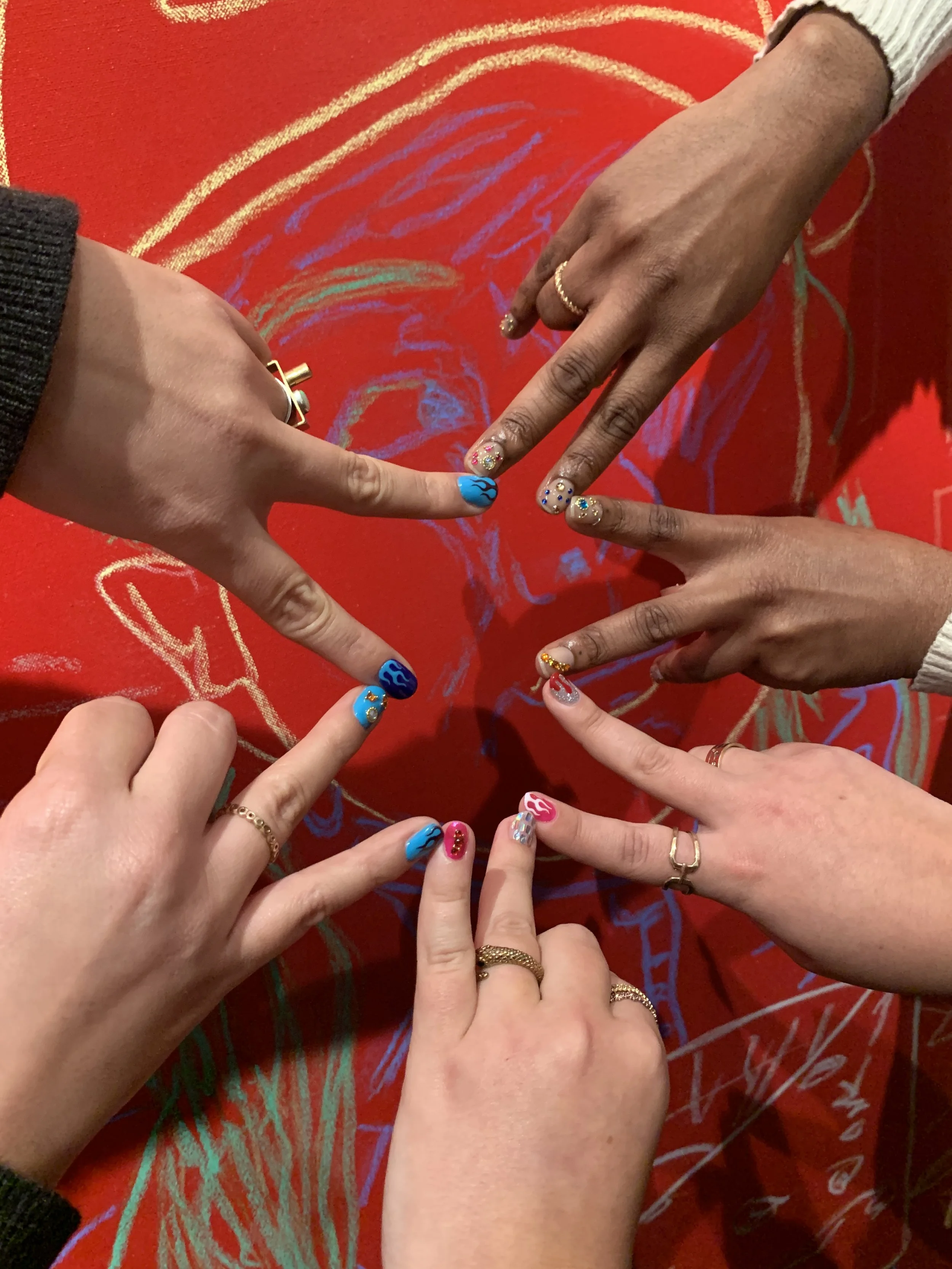 10 novembre. La nail artist Sabrina Samba a réalisé un atelier nail art en dialogue avec les oeuvres de l’artiste Aurore Maisondieu et les codes esthétiques de la bimbo et du gangster.