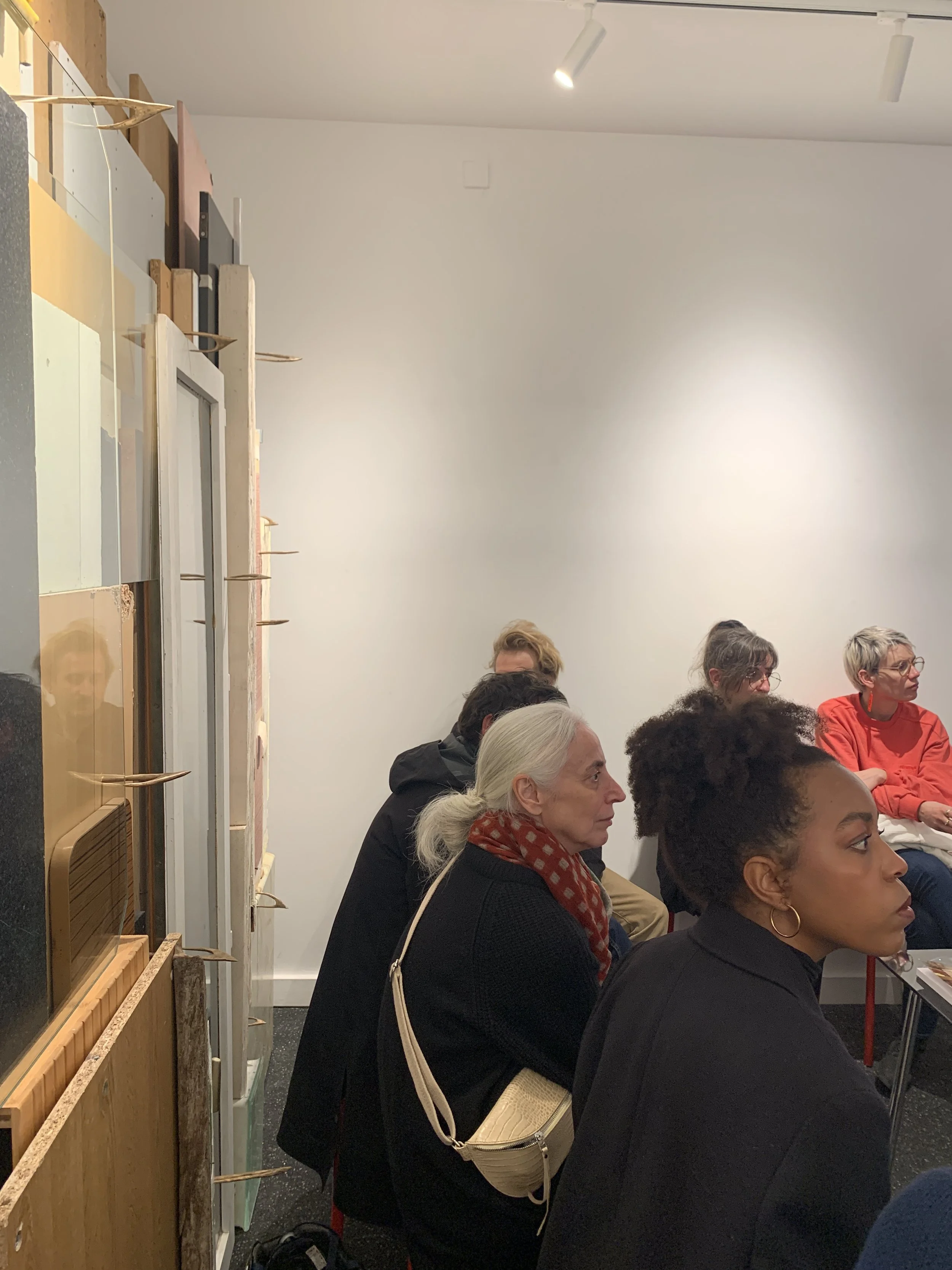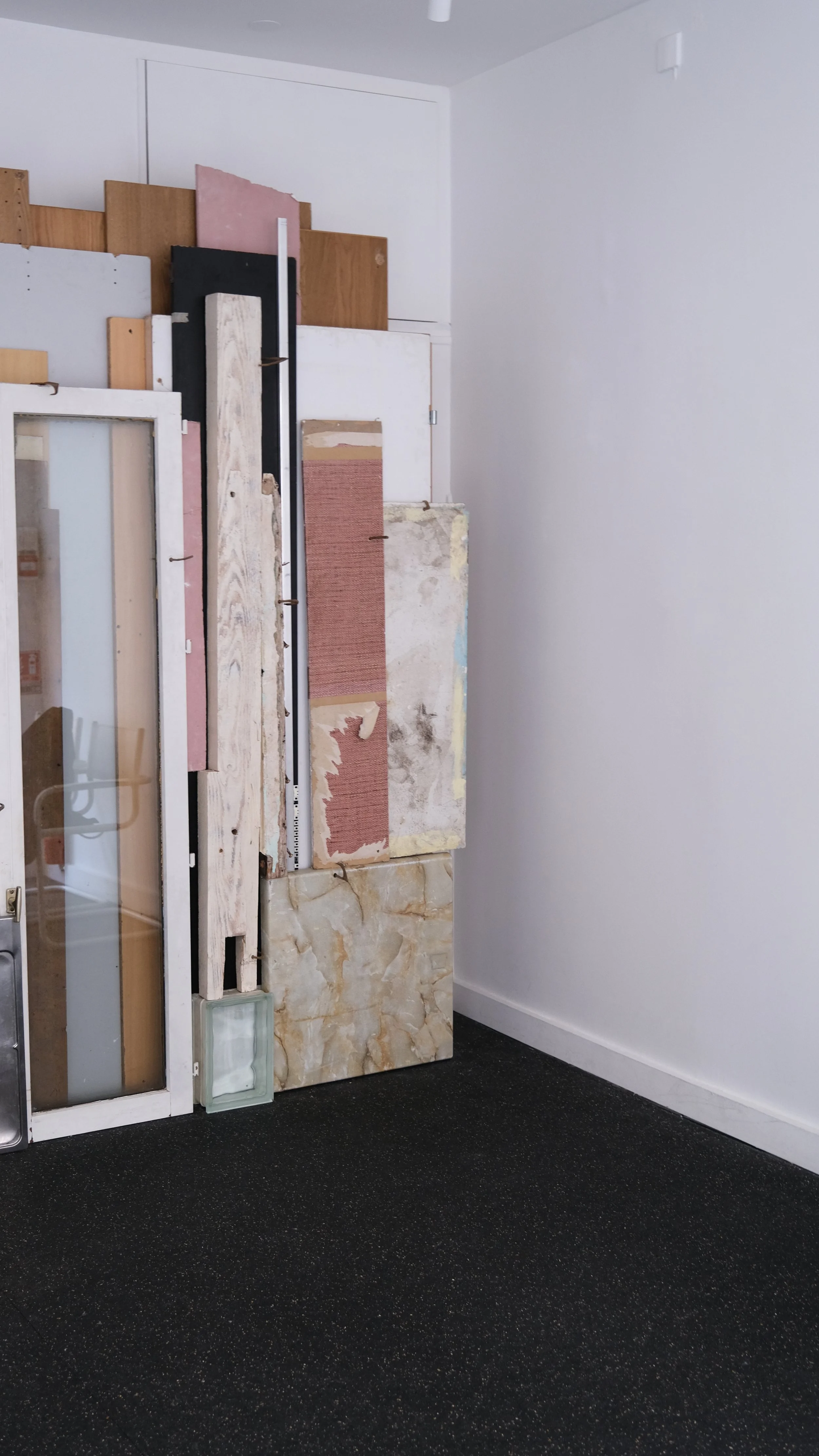 L’exposition présente un assemblage d’objets ayant appartenu un instant à la ville. Glanés par le duo à Belleville, l’installation est le fruit d’une extraction minutieuse de lambeaux relâchés dans l’espace public car jugé sans valeur (fragments de murs, fenêtres, piano de cuisine, débris de meubles, verres…). L’ensemble est broché de pièces de bronze reprenant la forme de la biffe des chiffonnier·ères. La préciosité du métal tranche avec la modestie des matériaux enchâssés. En chiffonnier·ères, les deux artistes requalifient ces morceaux de l’intime formant une esthétique du prélèvement. L’ensemble crée une phrase désarticulée produisant sa poésie propre, tel un anagramme.